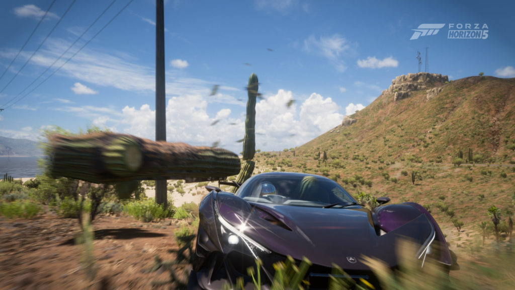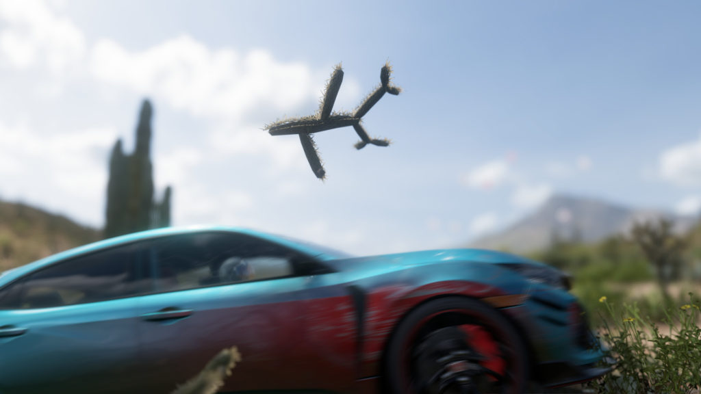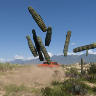 Was wirklich passiert, wenn ein Auto gegen einen meterhohen Kaktus fährt, wusste ich vor Forza Horizon 5 nicht. Aber schon die ersten Videos machten mich stutzig. Das Spiel sieht zu fotorealistisch aus, um mit diesem Quatsch durchzukommen. Das Auto berührt den Kaktus kaum, da fällt er auch schon zuvorkommend in sich zusammen. Es wirkt wie ein Gag; als wären die zahlreichen Helfer*innen des Horizon-Festivals extra vorher durch die Wüste gezogen und hätten Kakteen vorgeschnitten.