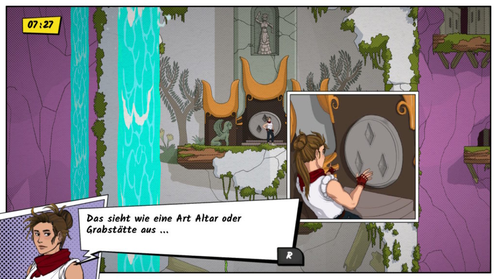 Der spanische Indietitel Treasures of the Aegean hat keine (frankobelgische) Comic-Vorlage – aber er sieht aus wie eine schicke Bildergeschichte. Deshalb möchte ich ihn euch im Rahmen dieses kleinen Specials ans Herz legen. Im Spiel macht sich die Grabräuberin Marie Taylor auf die Suche nach kostbaren Artefakten aus der Sagenwelt der Minoer. Einen überaus spannenden Kosmos haben sich die Entwickler*innen da ausgesucht – ist sich doch selbst die Wissenschaft teilweise noch uneins über diese erste europäische Hochkultur.