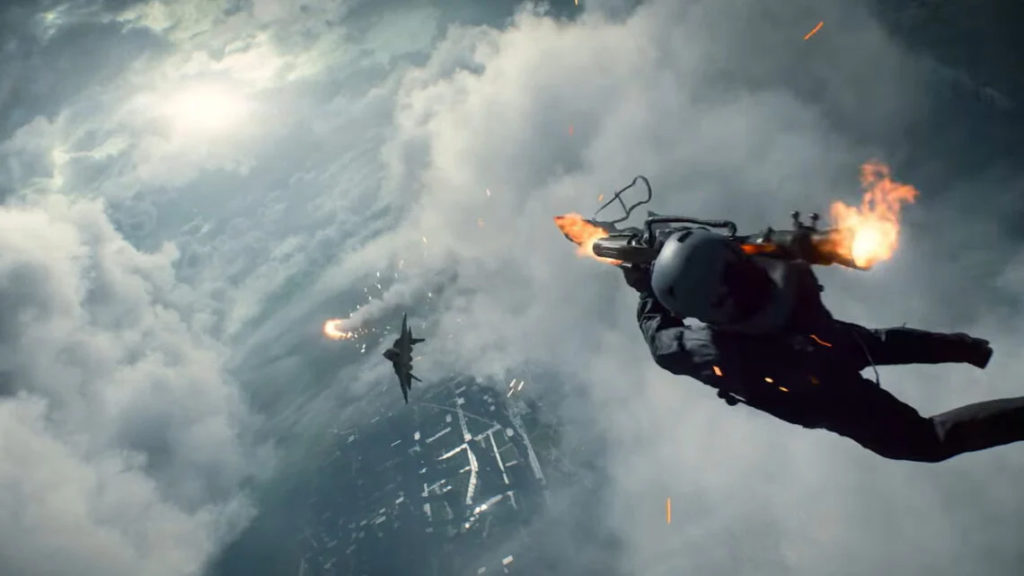 Die Hand am Joystick, ein hastiger Blick über die Schulter, dann ein Ruck nach hinten. Mit Schallgeschwindigkeit rast ein Jetpilot gen Stratosphäre. Verfolgt von einem gegnerischen Piloten löst der Fliegerheld seinen Schleudersitz aus und wird von seinem Jet weg katapultiert. G-Kräfte sollten ihn eigentlich zerreißen oder zumindest ohnmächtig machen. Entgegen aller Gesetze der Natur zückt der Typ aber eine Bazooka und zerschießt den Verfolger zu einem Feuerwerk aus Tausend kleinen Einzelteilen. Die Geschichte endet aber nicht hier. Der Pilot koordiniert seinen freien Fall mit dem Jet und ihm gelingt das Unmögliche: Er steigt wieder in das Cockpit ein und fliegt weiter.