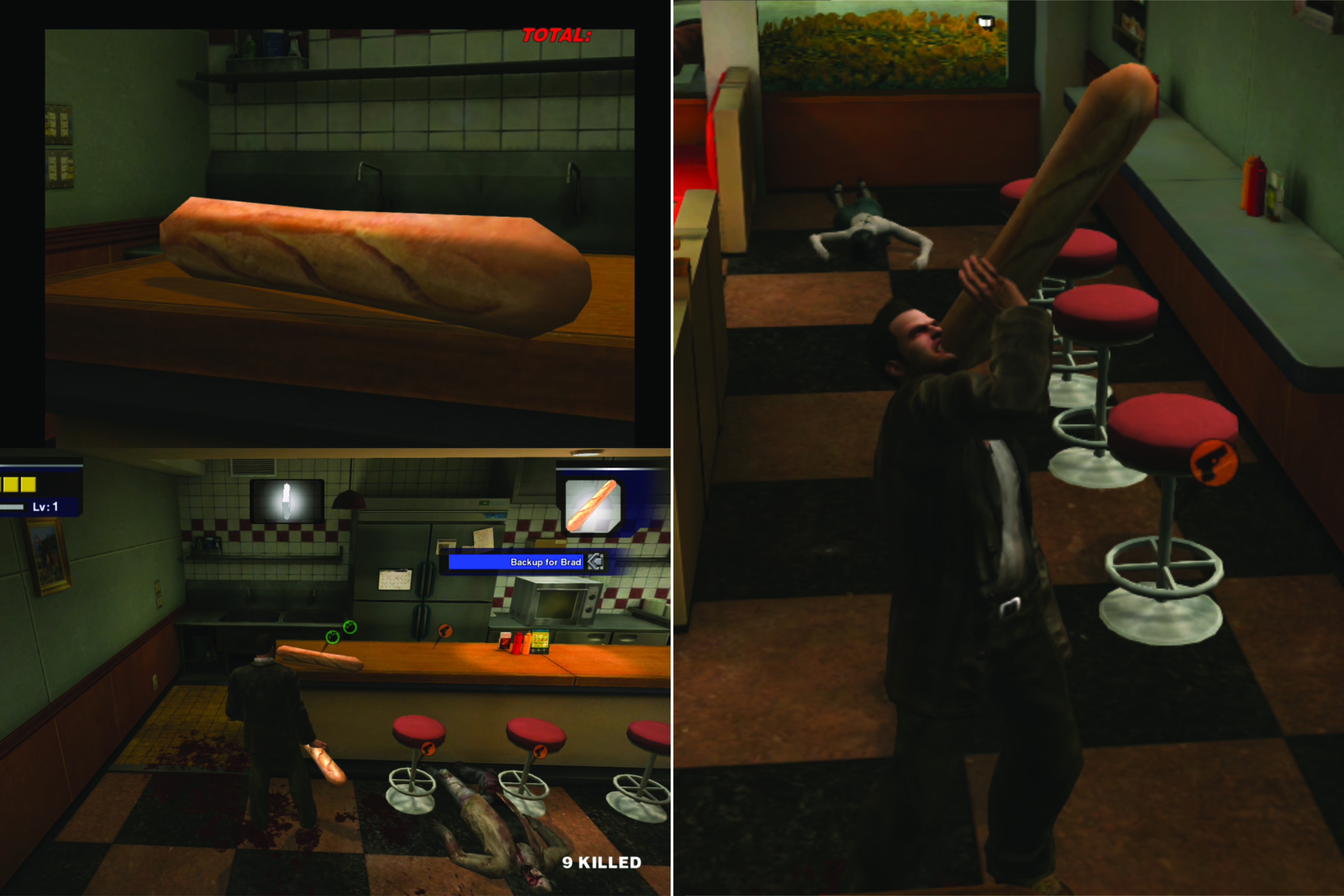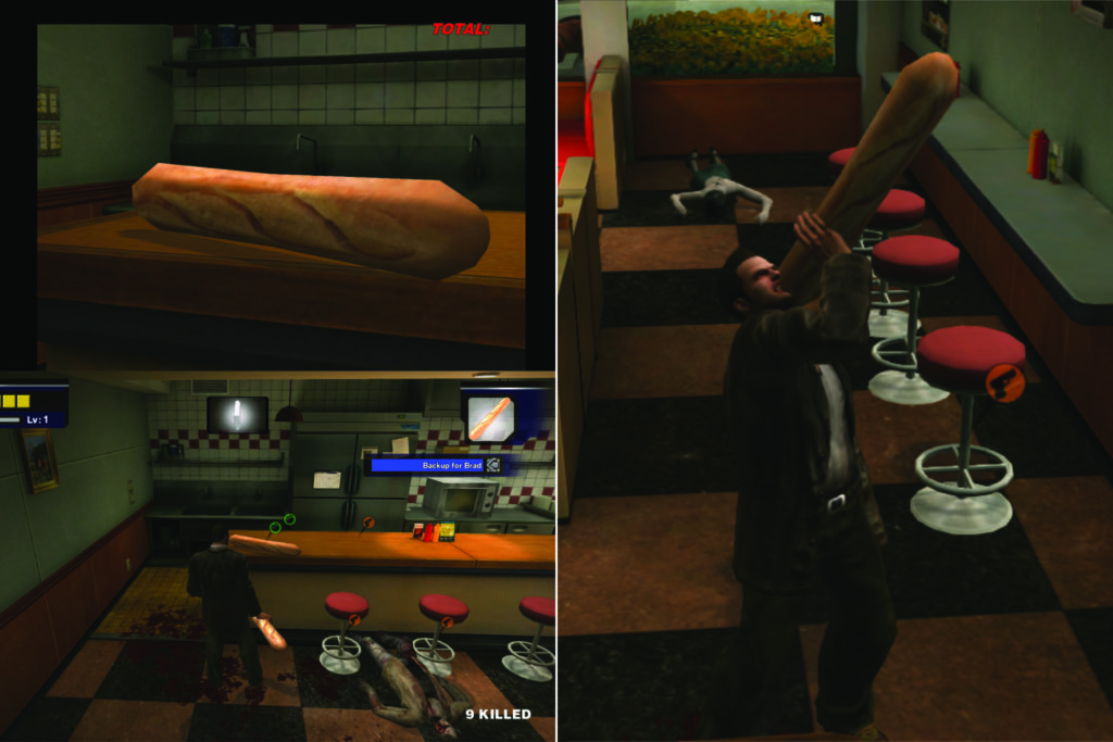 Eine ganz andere Hausnummer ist das Baguette aus Dead Rising: Dieses Franzosenbrot ist jenseits von Gut und Böse. Mit einer Länge von geschätzten acht Wii-Fernbedienungen und einem Gewicht von mindestens einem Relaxo eignet sich dieses wuchtige Baguette nicht nur zum Heavy-Metal-Brunchen, sondern auch um das im Keller verstaubende DIY-Gartenhäuschen jetzt endlich zusammen zu zimmern. Wer Brunches gerne mit „Ich hab heute noch was vor“ abwürgt, erwirbt mit dem Dead-Rising-Baguette das ultimative Multi-Tool.