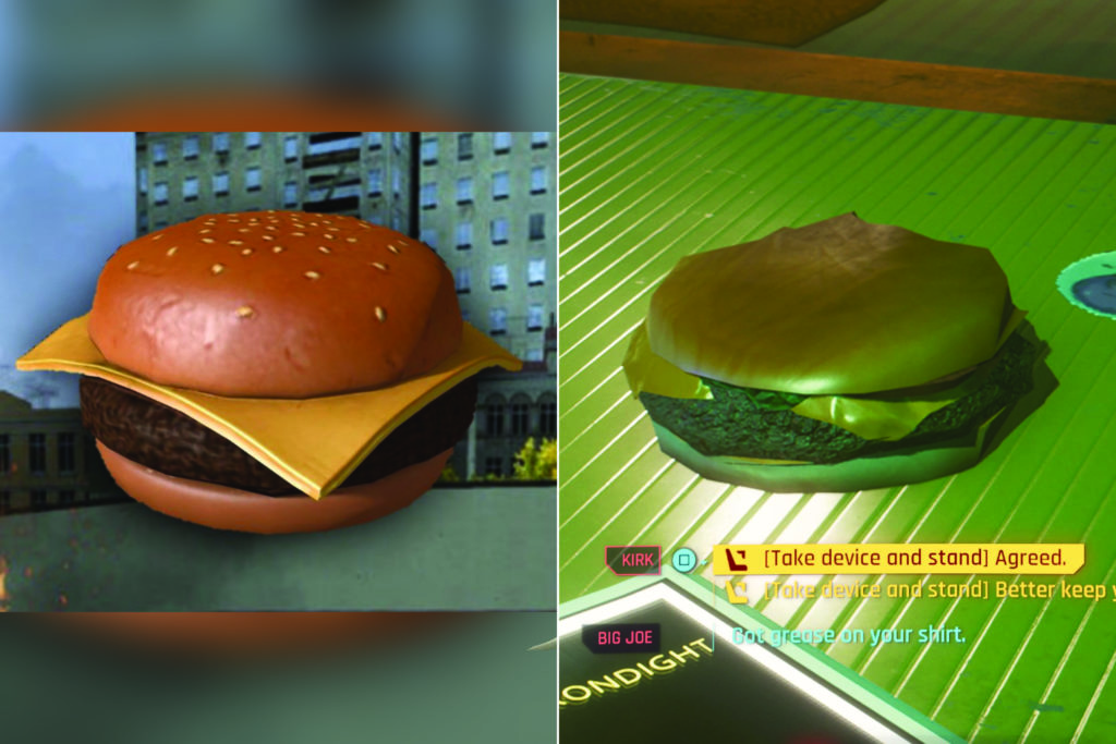 Brunchen hat seine eigenen Regeln, je nachdem, wer es zu welcher Tageszeit in welcher Umgebung veranstaltet. Warum also nicht direkt einen saftigen Cheeseburger auftischen? Zwei Videospiele haben ebendies versucht: Garry’s Mod (2006) und Cyberpunk (2020). Während Garry Newman’s Sandbox-Hit sogar mit Sesam auf den fluffigen Burger-Buns aufwartet, gleicht CD Projekt Red’s Cyberpunk-Hamburger einer Polygon-Pampe, die wahrlich ihresgleichen sucht. Selten sah der Fastfood-Favorite noch schlechter aus als es in realen Restaurantketten der Fall ist, und gemessen daran, dass der Burger digital gebraten wurde, ist das doch wirklich eine reife Leistung. Also: Garry’s Burger der Oma servieren, die dir immer einen Zehner zusteckt, und den Cyberpunk-Fail dem Kollegen, der dir seit Wochen auf den Sack geht.