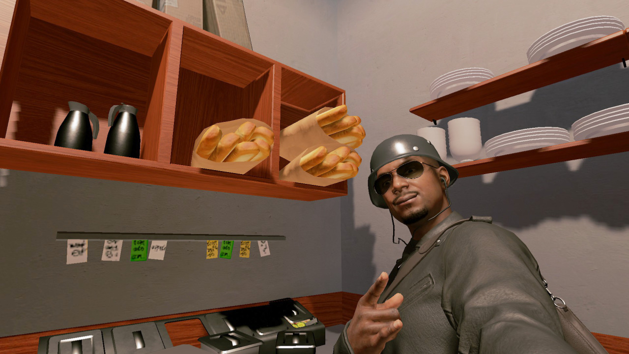 Die Verantwortlichen hinter Watch Dogs 2 waren wohl an einem Punkt so stolz auf das Baguette, das eine*r ihrer unterbezahlten 3D-Artists gemodelt hatte, dass kurzerhand beschlossen wurde: Watch Dogs 2 braucht dieses Baguette – en masse. Im Oberregal eines Ladens wurden so insgesamt 18 Exemplare dieses französischen Klassikers in helle Papiertüten dupliziert und schön hergerichtet. Da trifft es sich gut, dass direkt nebenan für Kaffeekannen gesorgt wurde, weil, wir erinnern uns, Brot geht schließlich immer – auch trocken zum deutschen Lieblingsgetränk.