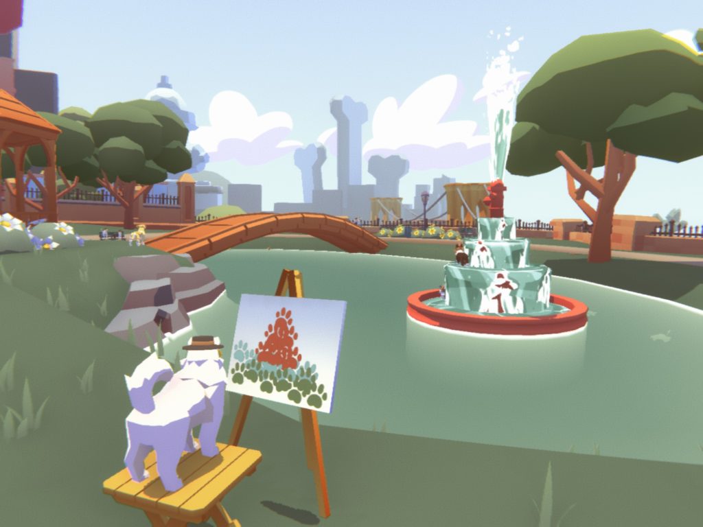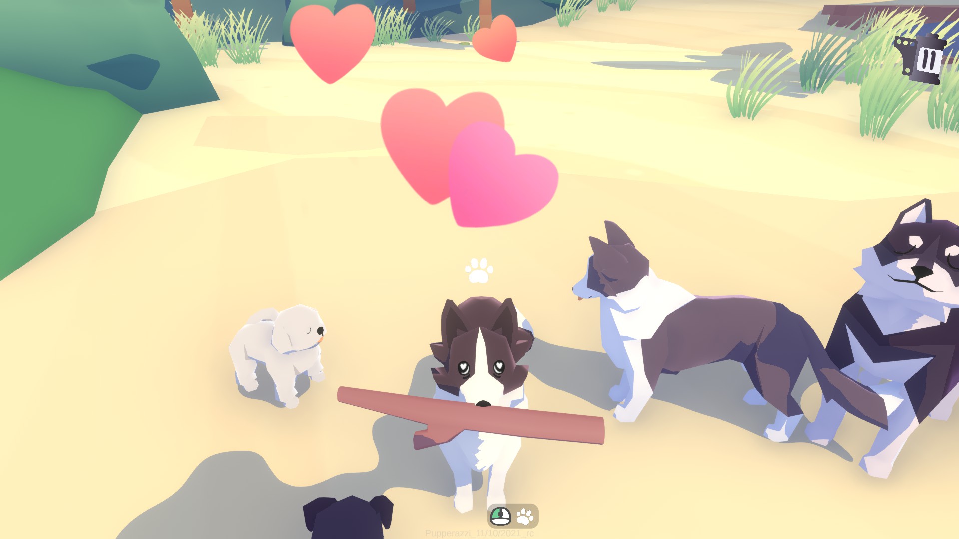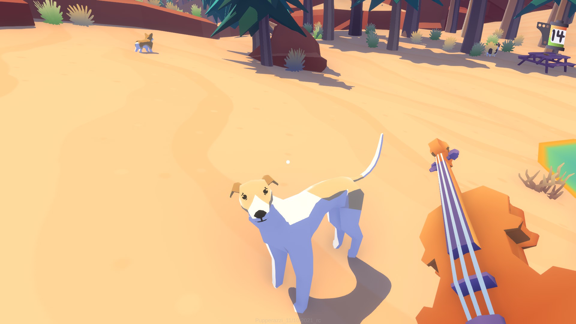 Pupperazzi will überhaupt keine realistische Fotosafari im Hundepark veranstalten. Es geht genau um die Freude daran, Dinge etwas zu einfach zu machen. Ich laufe in einer unmöglichen Hundewelt herum und mache süße Fotos und alle Interaktionen sind simpel und etwas absurd. Wenn ich Hunde streicheln will, manifestiert sich ein Armrüssel an meiner Seite, rubbelt den Hund, und Herzchen steigen auf.
