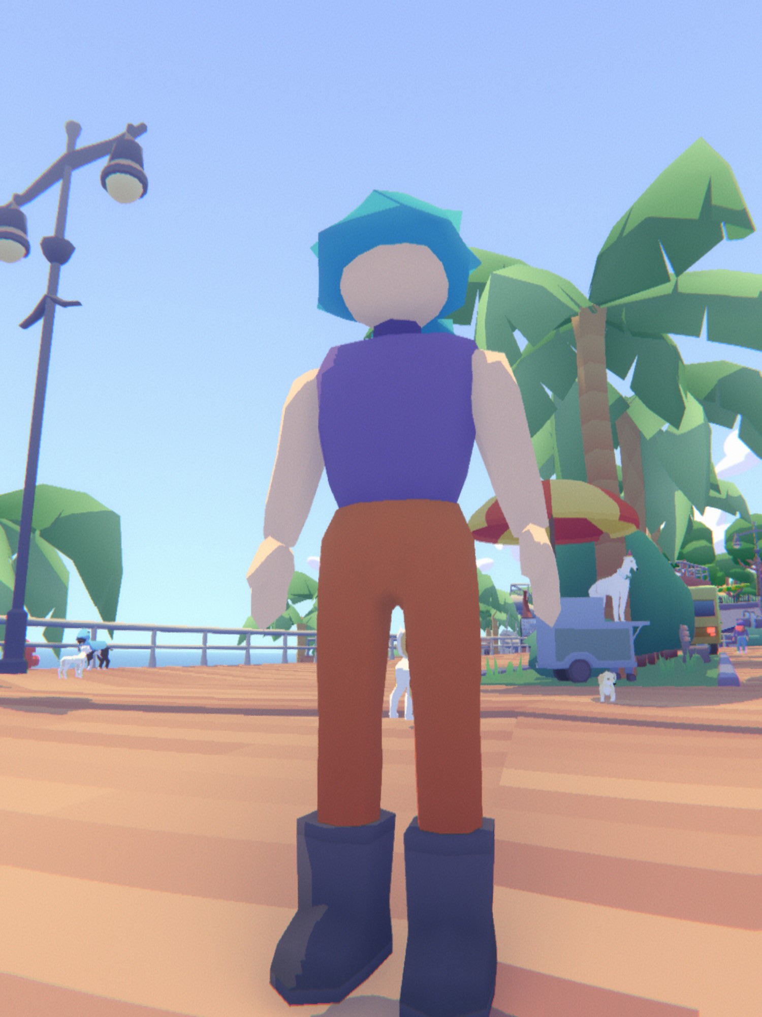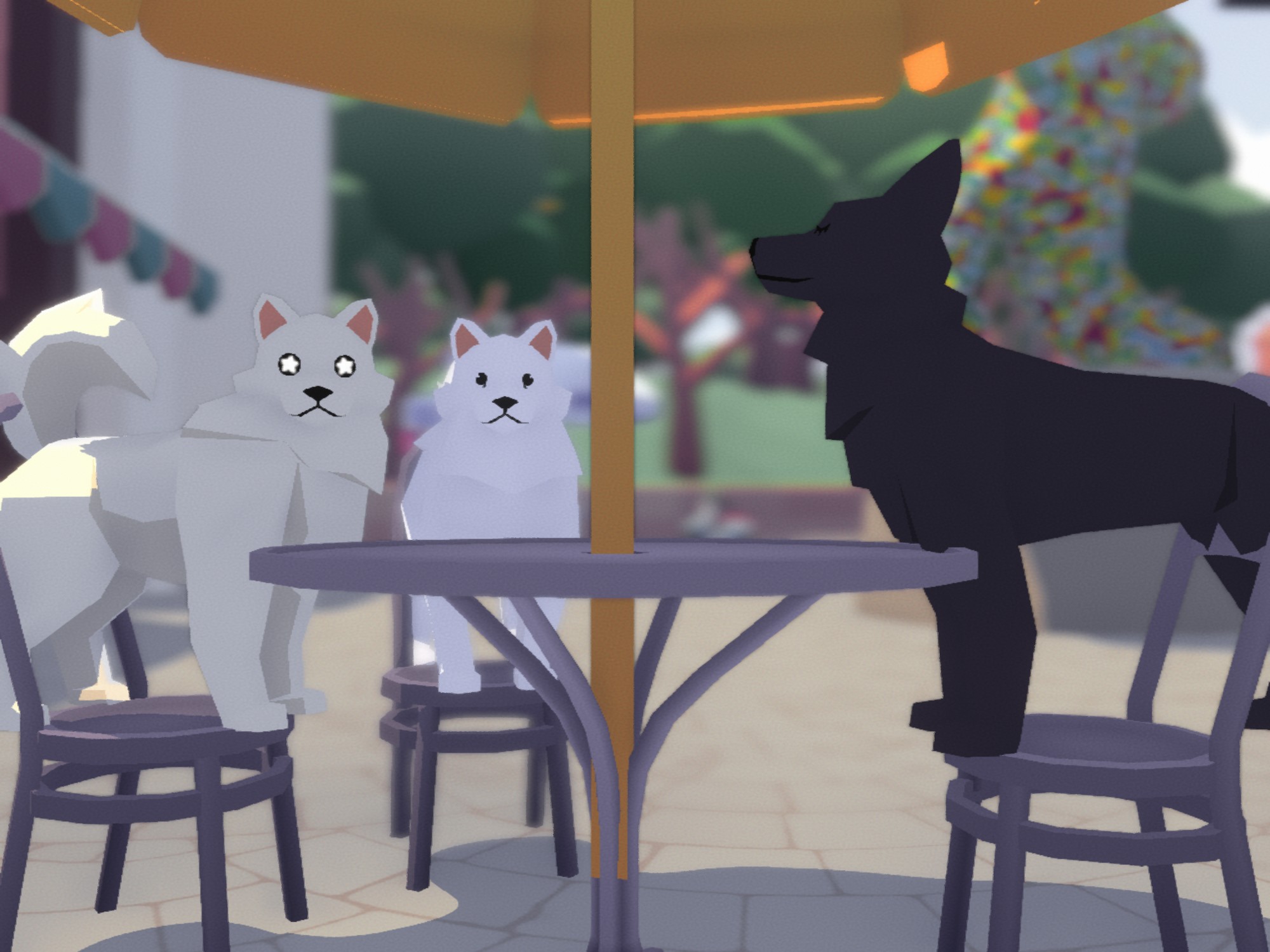 Hier ist Pupperazzi besser als Twitter. Die Hunde wirken natürlich, sogar beim Malen, Skaten und Schaukeln. Im Zweifelsfall sitzen sie wie von den Entwickler*innen platziert da und schauen zufrieden. Brave Hunde! Ich laufe in Egoperspektive am Strand herum. Ein Rudel hüpft herbei. Die Hunde wollen, dass ich Stöcken werfe und sie streichle. Das wirkt natürlich! Und süß.