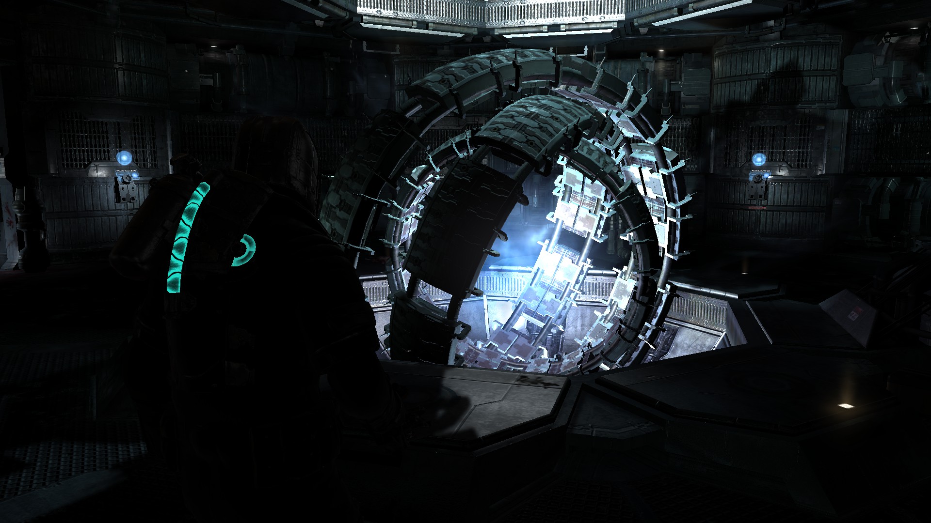 In Dead Space stellt sich Isaac diese Fragen nicht konkret selbst, da ihn das Überleben in den Nekromoph-verseuchten Raumstationen wohl genug beschäftigt. Das Setting des Weltalls lässt jedoch Fragen in dieser Richtung offen. Außerdem möchte ich an dieser Stelle anmerken, dass auch die Dead-Space-Spiele sich von anderen Werken inspirieren ließen. Der Art Director des ersten Spiels, Ian Milham, nannte dabei auf Twitter einige seiner Einflüsse, darunter die Filme Solaris und Event Horizon. Beide Filme thematisieren den Wahnsinn. In Event Horizon gibt es dabei einen sogenannten Gravity Drive im Raumschiff, der ein schwarzes Loch erzeugt, damit sich das Raumschiff schneller als das Licht fortbewegen kann. Einer der Hauptcharaktere wird in diesen Gravity Drive hineingezogen und mit dem Inneren eines schwarzen Lochs konfrontiert. Dadurch stellt er sich dem Nicht-Wissen, welches das Weltall mit sich bringt und dreht durch. Genau dieser Gravity Drive wird in Dead Space 2 zumindest visuell nachgestellt.