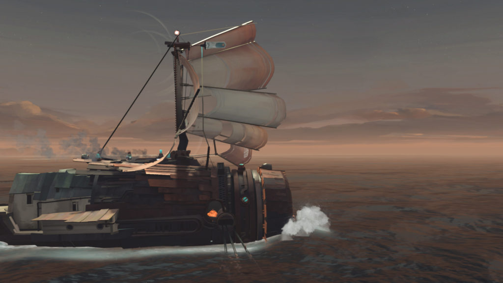 Die Prämisse bleibt. FAR: Changing Tides ist wie FAR: Lone Sails, nur auf dem Wasser. Die Spiele sind dermaßen ähnlich, dass ich zwischendurch den Verdacht hatte, sie würden sich optisch gar nicht unterscheiden. Aber meine Erinnerung trügt: Teil 1 sieht simpler aus, steuert sich einfacher, ist weniger detailliert und halb so lang.
