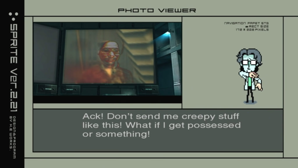 Nach dem Erfolg des ersten Metal Gear Solid, werden auch Kojimas versteckte Auftritte selbstbewusster. Wenn ihr in der Tanker-Mission von Metal Gear Solid 2 die Kamera erhaltet, warten allerhand Eastereggs und versteckte Dialoge auf euch – auch Kojima ist dabei. Fotografiert ihr im zweiten Konferenzraum den rechten Monitor, erscheint ein Geisterbild von ihm auf dem Foto. Etwas gruselig? Otacon zeigt sich ebenfalls schockiert, wenn ihr ihm das Bild zeigt.