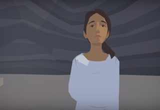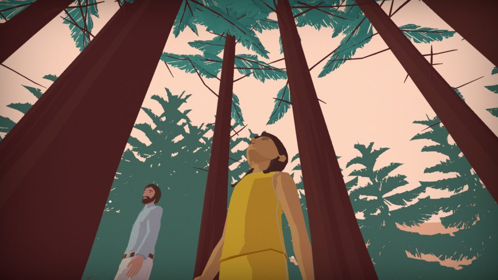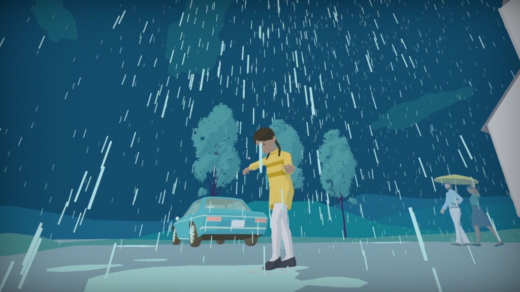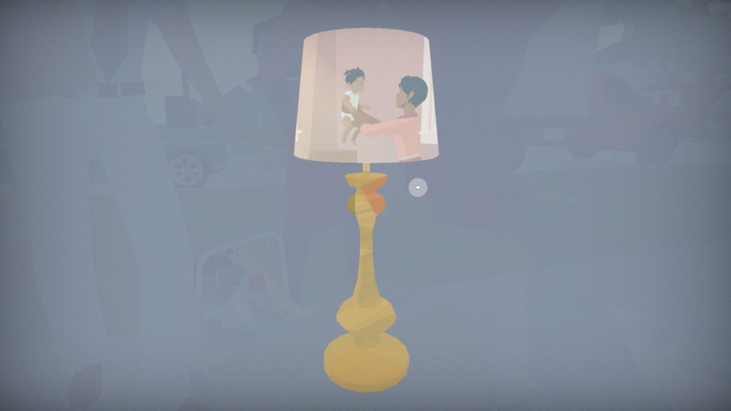 So ungezügelt und frei ist Hindsight aber selten. Es ist ein narratives Spiel, mit großem N und kleinem S. Vor allem erzählt es eine festgelegte, kurze Geschichte. Hindsight stürzt uns in eine Szene, die wir drehen und wenden können, die sich aber nicht bewegt. Irgendwo ist der Ausgang zum nächsten Diorama versteckt, aber nur so gut, dass sich ein kleines bisschen Reibung ergibt. Ich soll der Tochter beim Erzählen der neuen Erinnerung zuhören, dann ein bisschen wischen, bis ich den blinkenden Ausgang finde, dann darauf tippen, um durchzutauchen. Blinken tut es meist dort, wo die Geschichte logischerweise weitergeht. Die Musikstunde stürzt sich in die Klaviatur, oder die Tochter durch die Haustür.