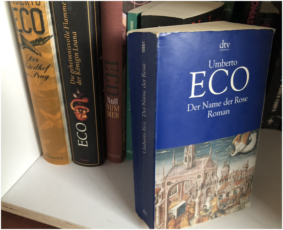 Umberto Ecos „Der Name der Rose“ begleitete mich jeden Tag auf dem Weg ins Freibad. Während um mich herum alles lachend im Wasser platschte, versank ich im Mittelalter Ecos. In seinen Figuren, die ebenso krachend an der kognitiven Dissonanz zwischen Denken und Glauben zerbrachen wie ich. William von Baskerville und seiner Liebe zu Büchern, die verboten waren, weil sie den Glauben der Kirchenmänner in Frage stellten. Seinem Schüler Adson, dessen körperliches und emotionales Verlangen an kruden Moralvorstellungen zerschellte.